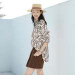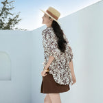 Coffee Art Blouse, Boho blouse, Relaxed Fit, linen blouse,Cozy Artistic Coffee Print Shirt - Loose Fit Viscose Linen Blend Top for Women