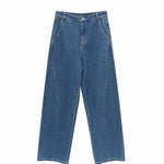 Dark Gray / Blue Wide-Leg Jeans for Women | 100% Cotton High-Waisted Trousers | Breathable & Anti-Buckle Design