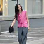 Colorful Layered Wool Vest for Women | V-Neck Mock Two-Piece Design | Gray, Pink, Yellow
