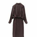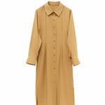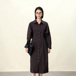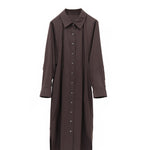 Elegant Dark Brown / Yellow Button-Up Wrap Dress for Women - Cocoa Cotton-Blend Stretch Fabric, cocoa dress women, brown button dress