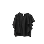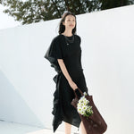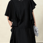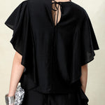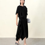 Elegant Black Draped Bell Sleeve Blouse & Skirt Set | Eco-Conscious Lyocell Fabric | Relaxed Round Neck