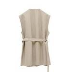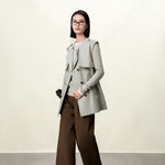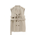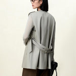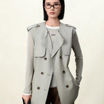 Elegant Misty Salt-Grey Sleeveless Trench Vest for Women: Military-Inspired Fashion Statement, military-Inspired jacket women