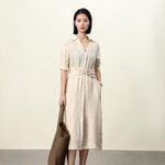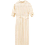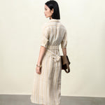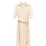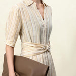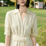 Yellow Buttercream Linen Stripe Dress for Women | Cross-Wrap Waist Detail | 100% Breathable Linen with Cotton Lining