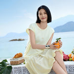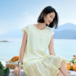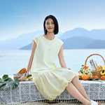 Yellow Sleeveless Layered Dress, yellow layered dress, mugwort-cotton antimicrobial | TENCEL-Linen Blend