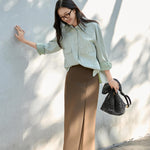 Eco-Friendly Espresso Brown Midi Wrap Skirt with Utility Pleats & Safari-Inspired Healing Aesthetic
