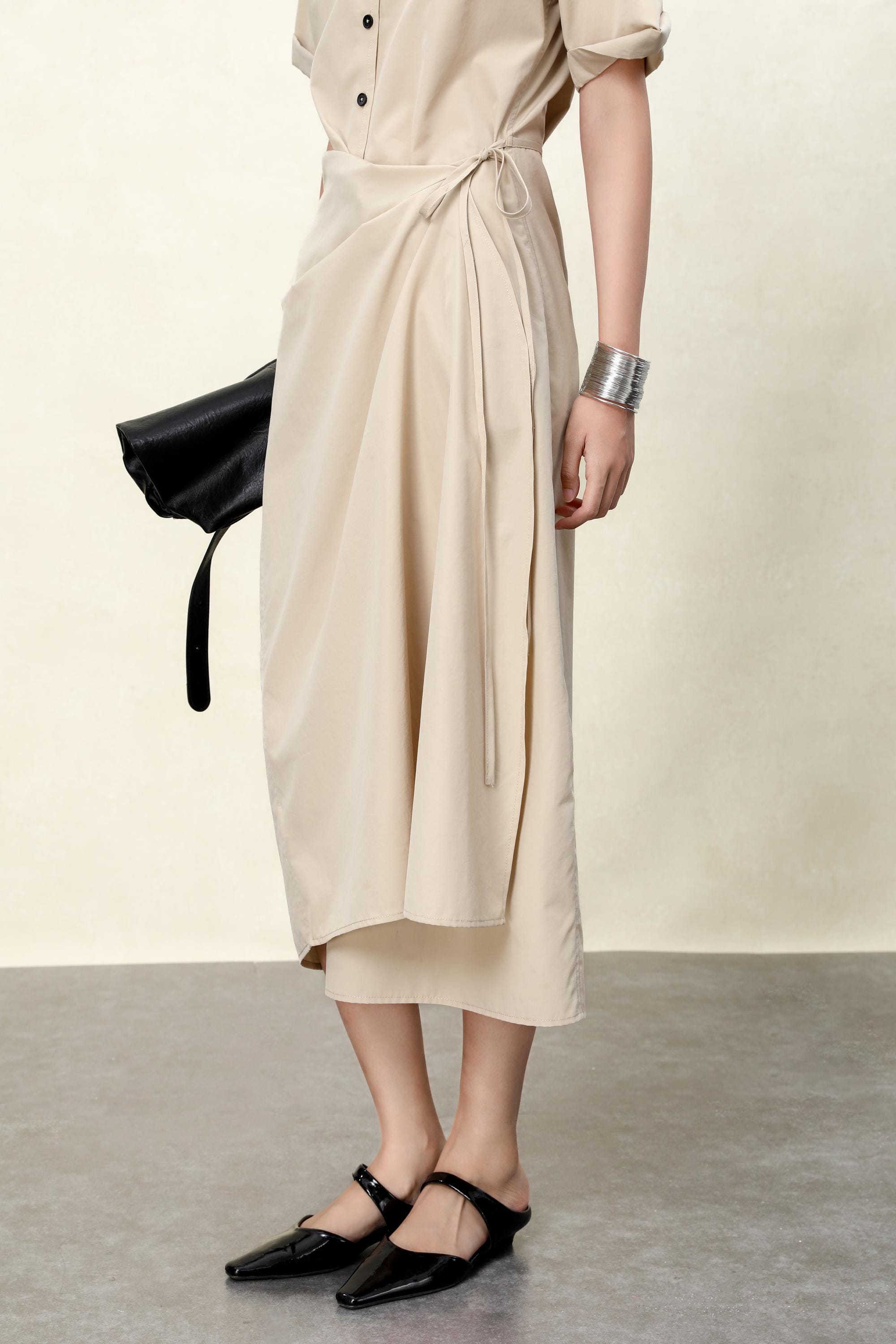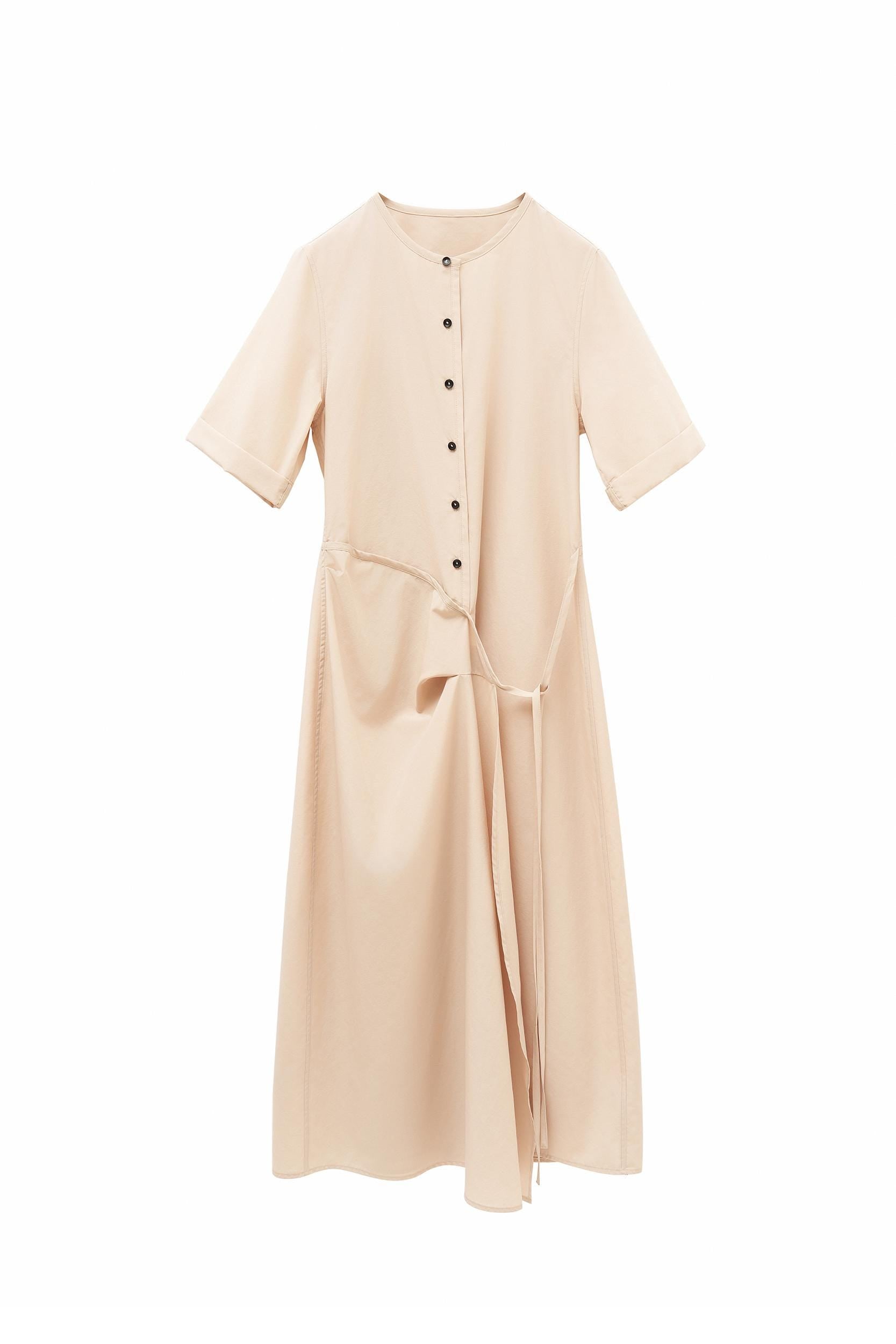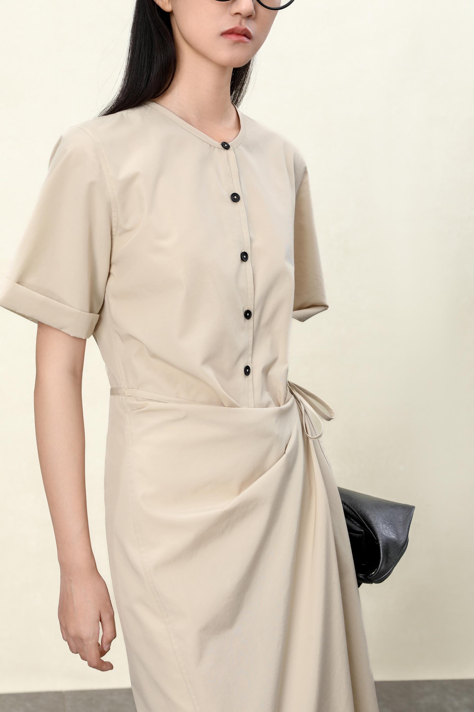 Apricot Wrap-Belt Shift Dress for women | Wrinkle-Proof Poly-Cotton Blend | Office-to-Resort Versatility