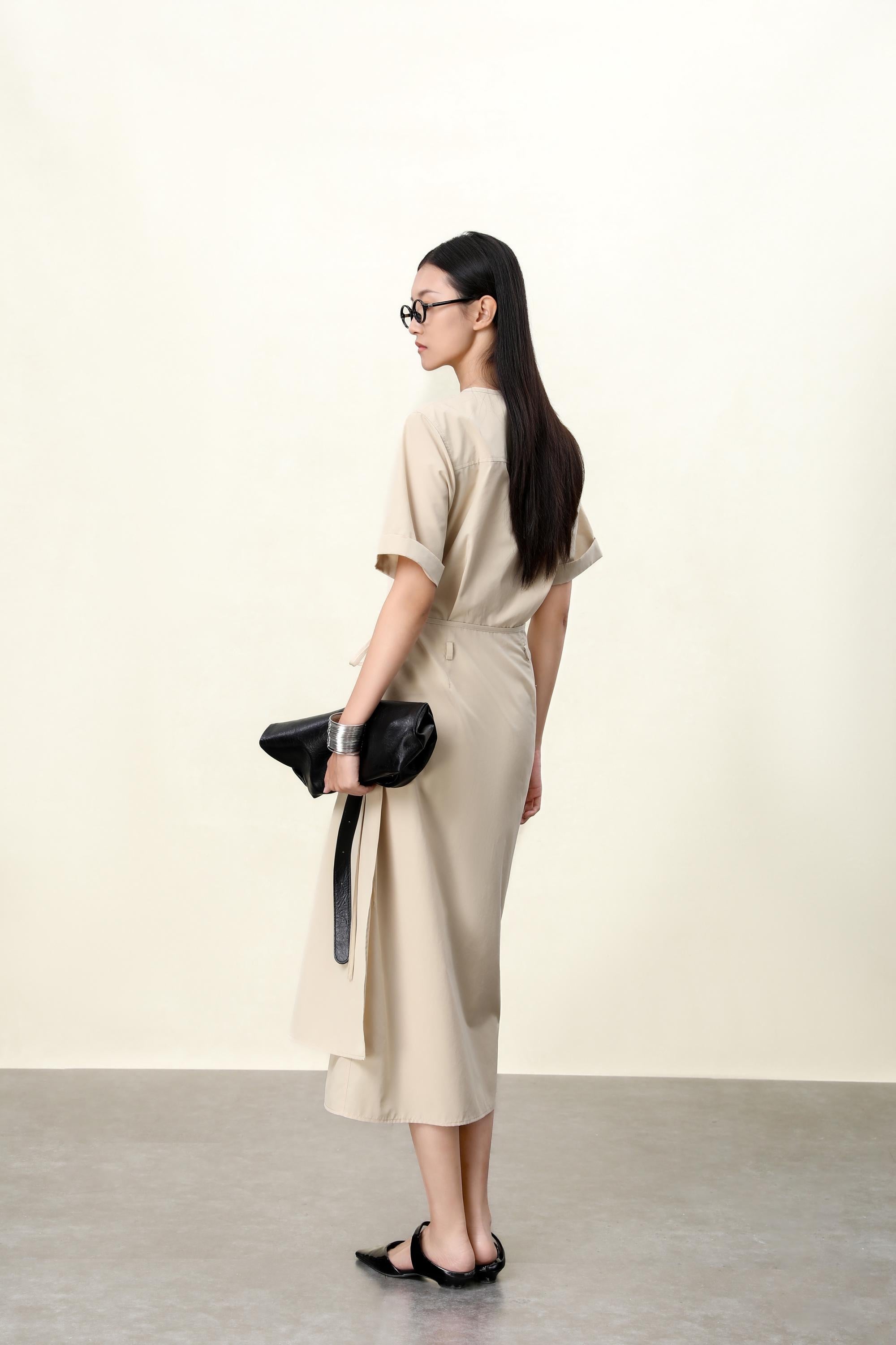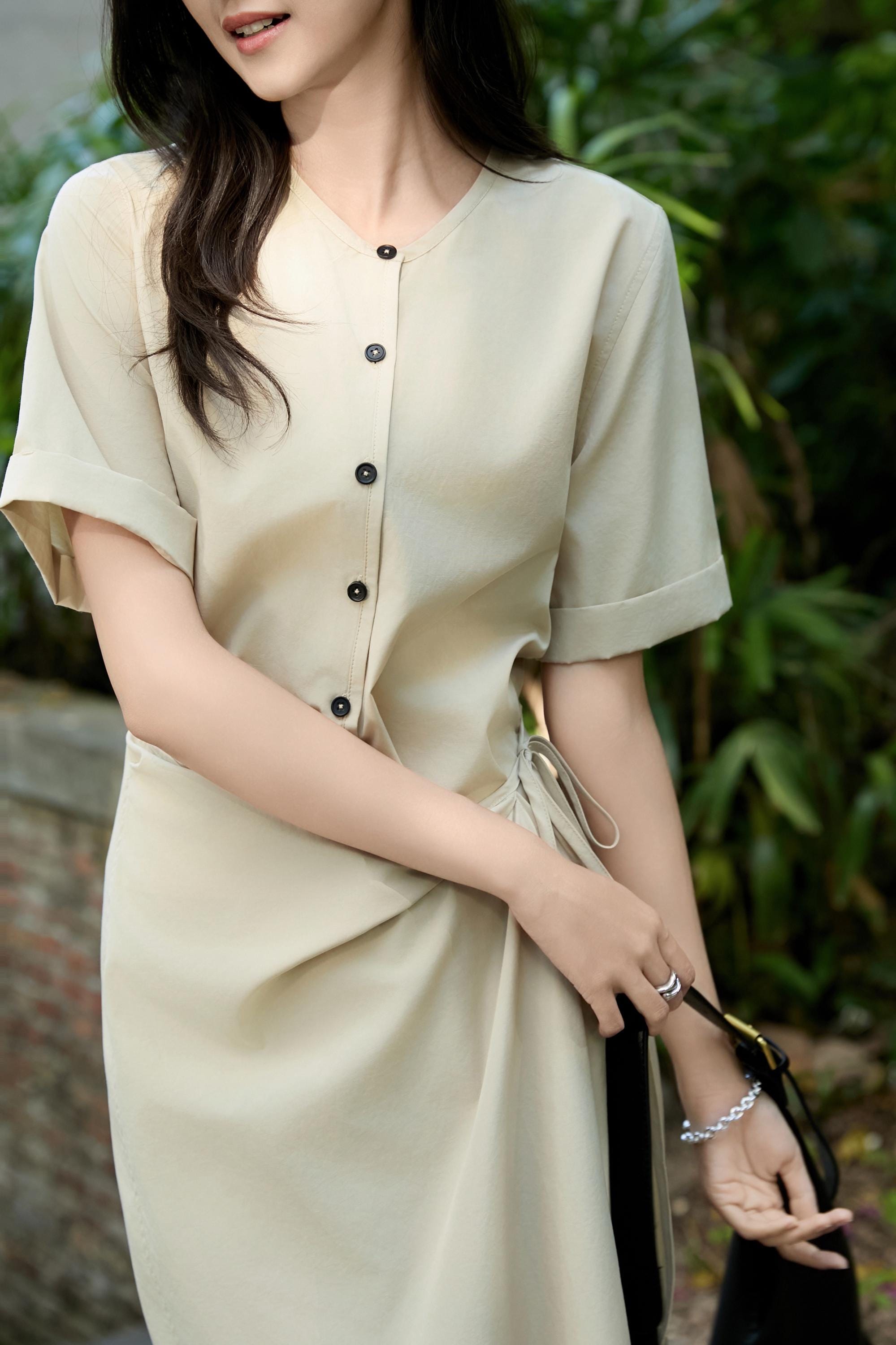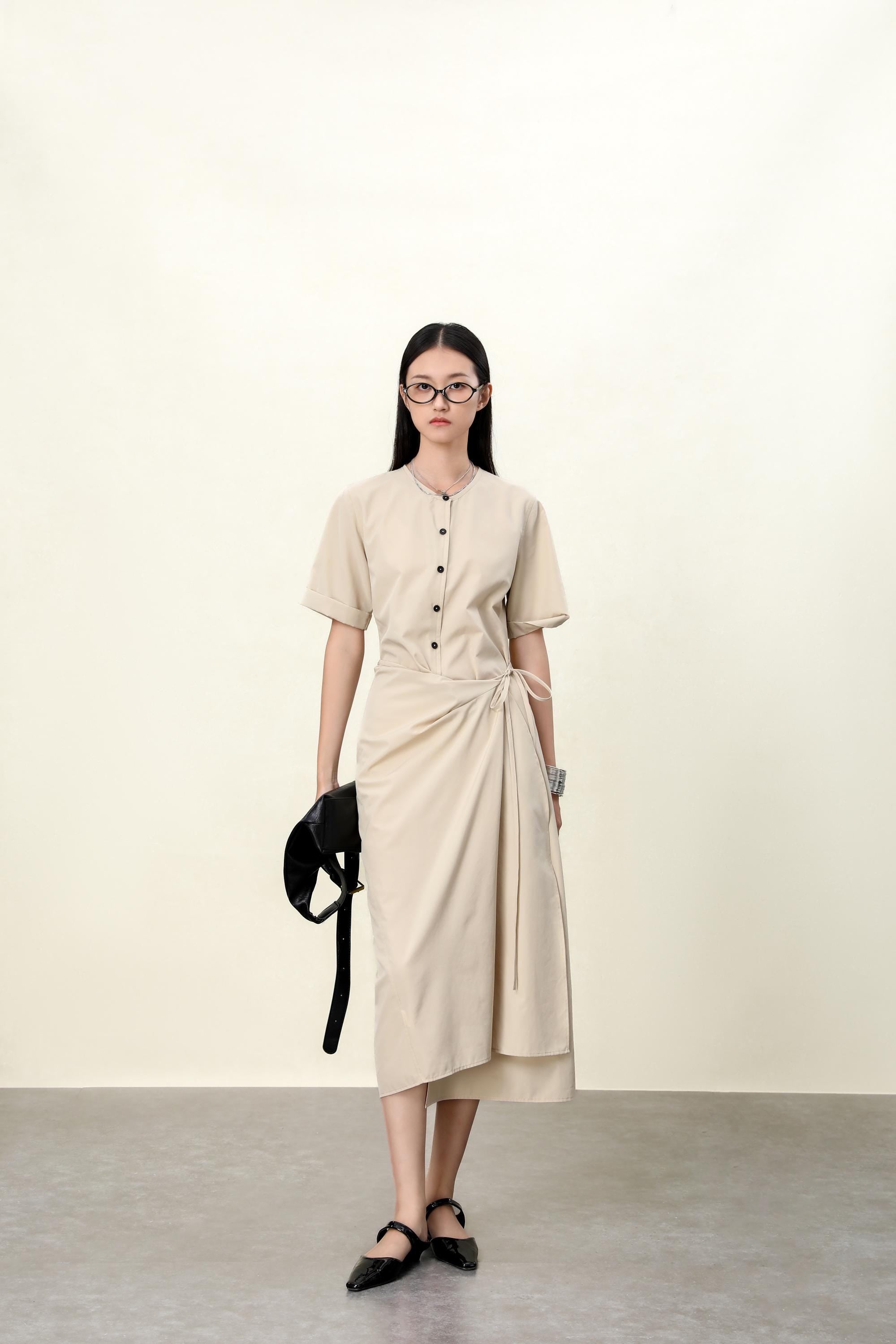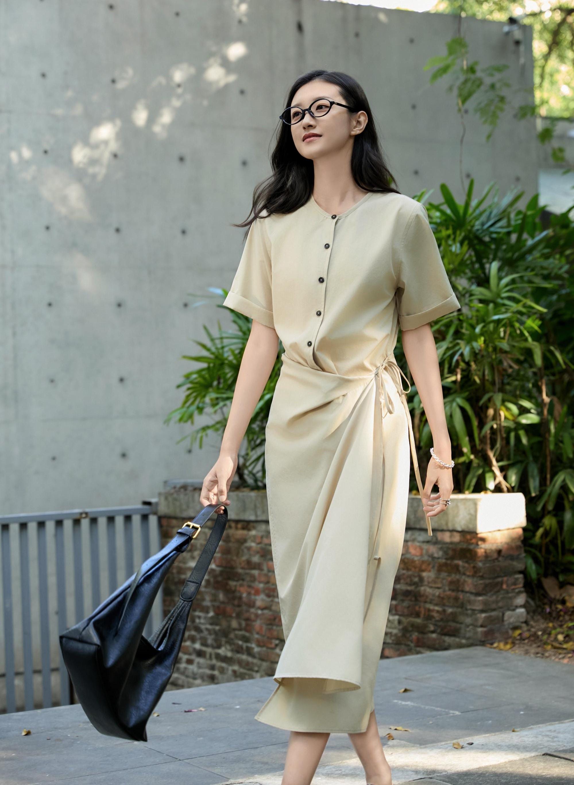 Apricot Wrap-Belt Shift Dress for women | Wrinkle-Proof Poly-Cotton Blend | Office-to-Resort Versatility