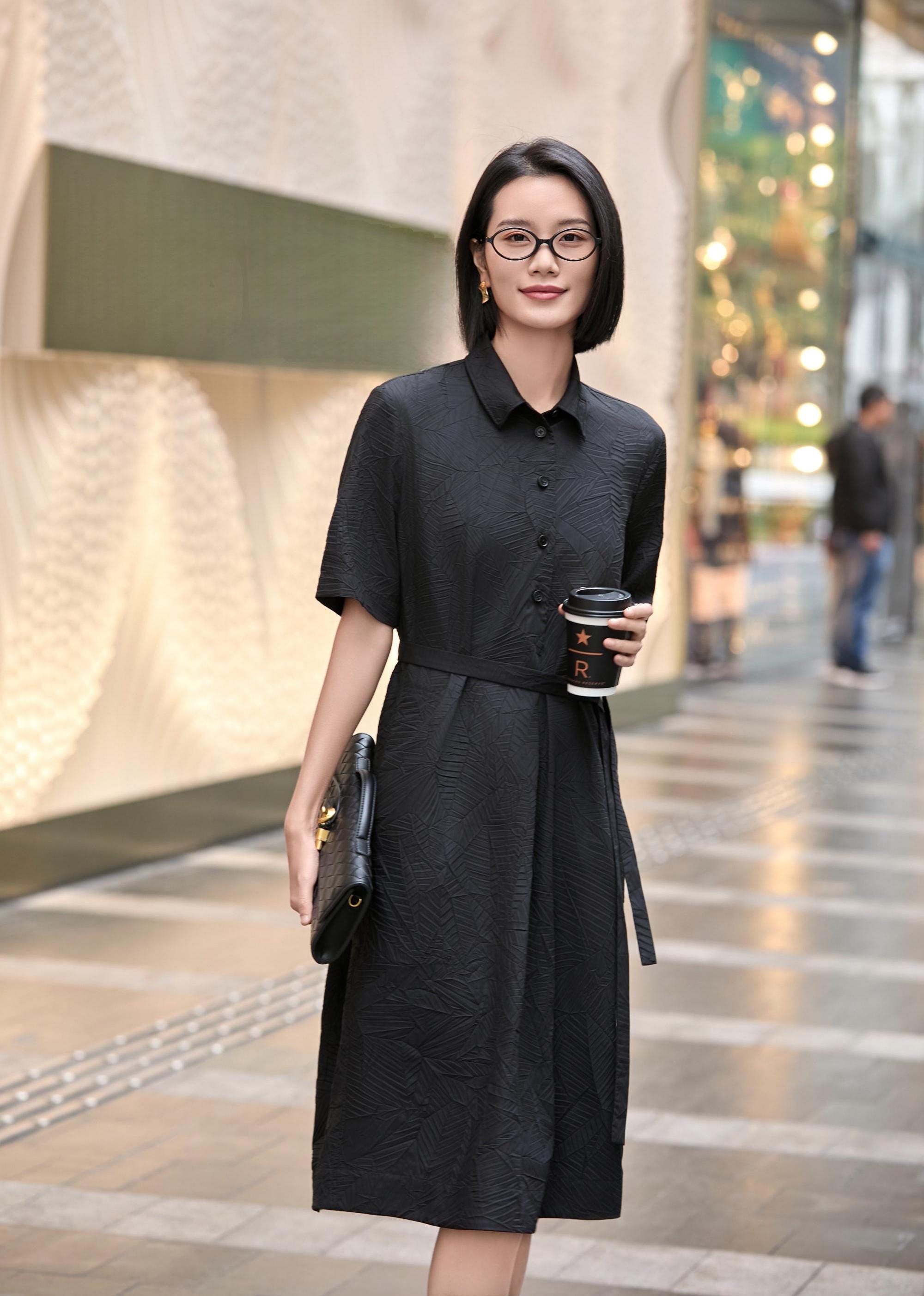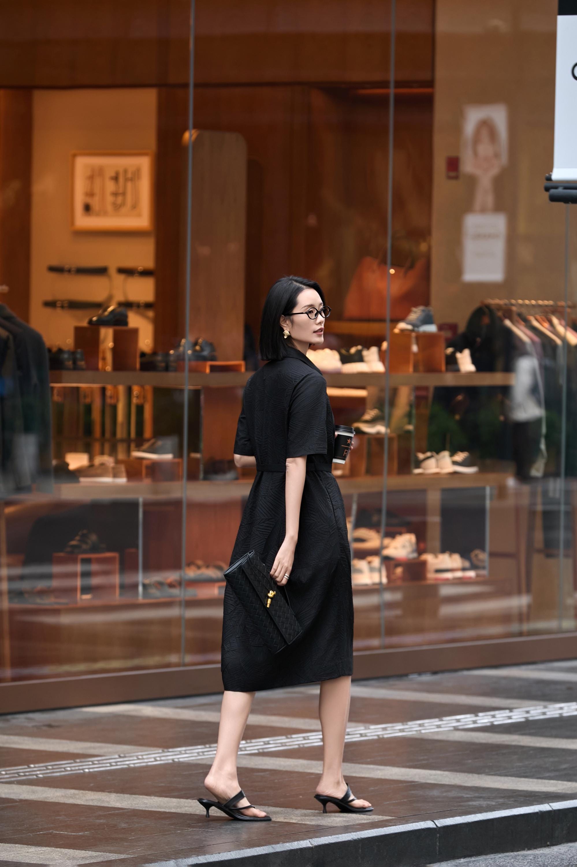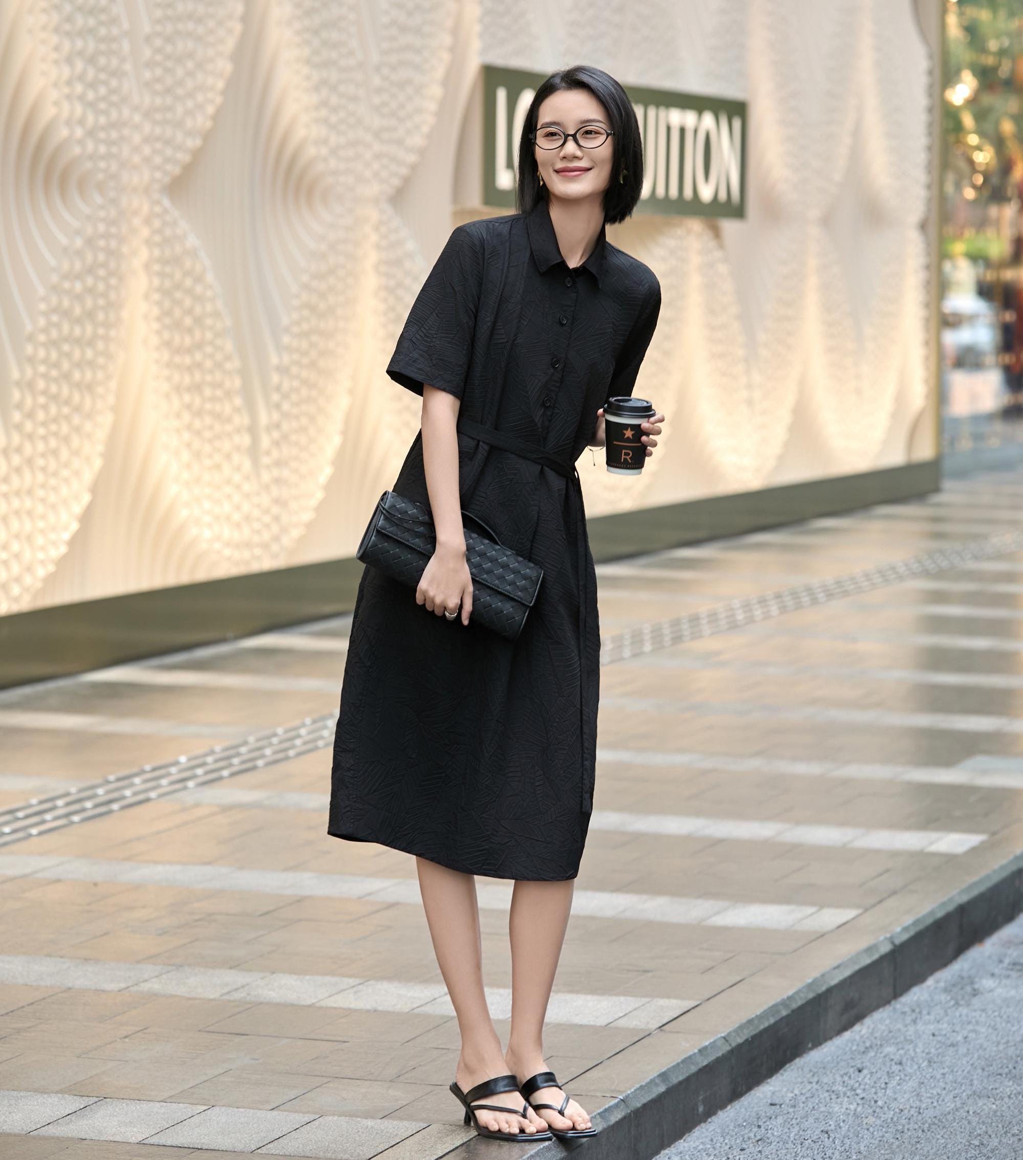 Artisan Detailing: Abstract charcoal stripes with asymmetric hemline.