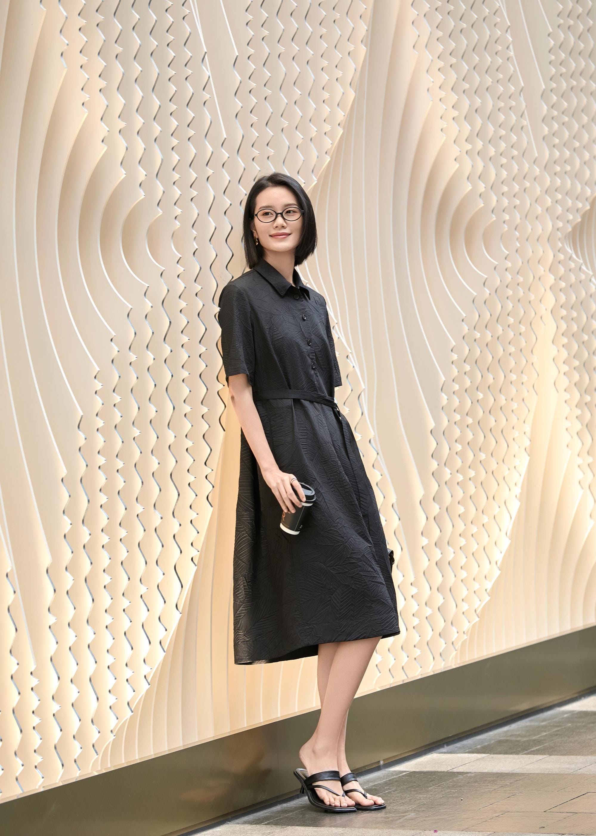 Chic Black Irregular Stripe Dress | Crinkle-Texture Design | Women's Poly-Cotton Blend Casual Wear