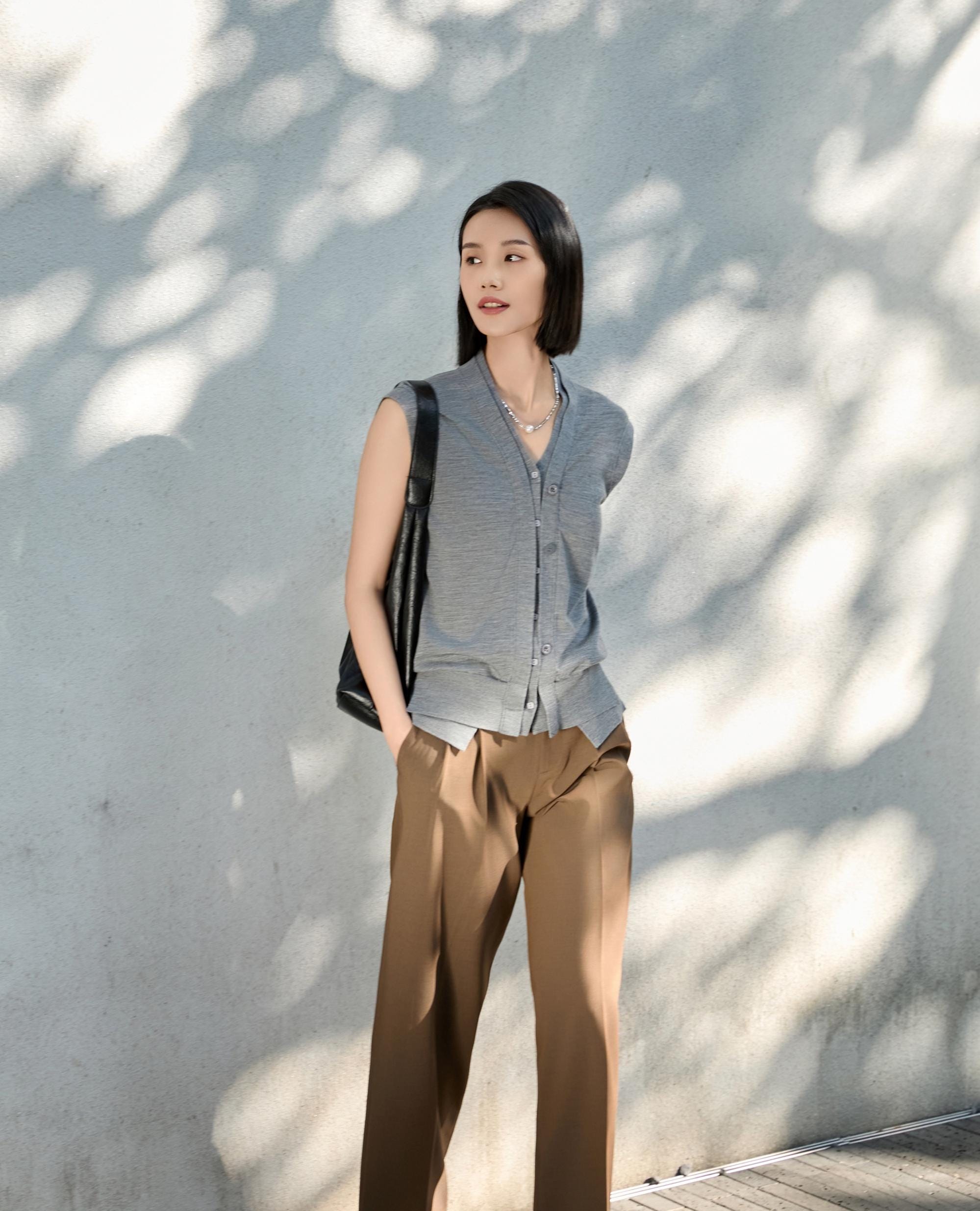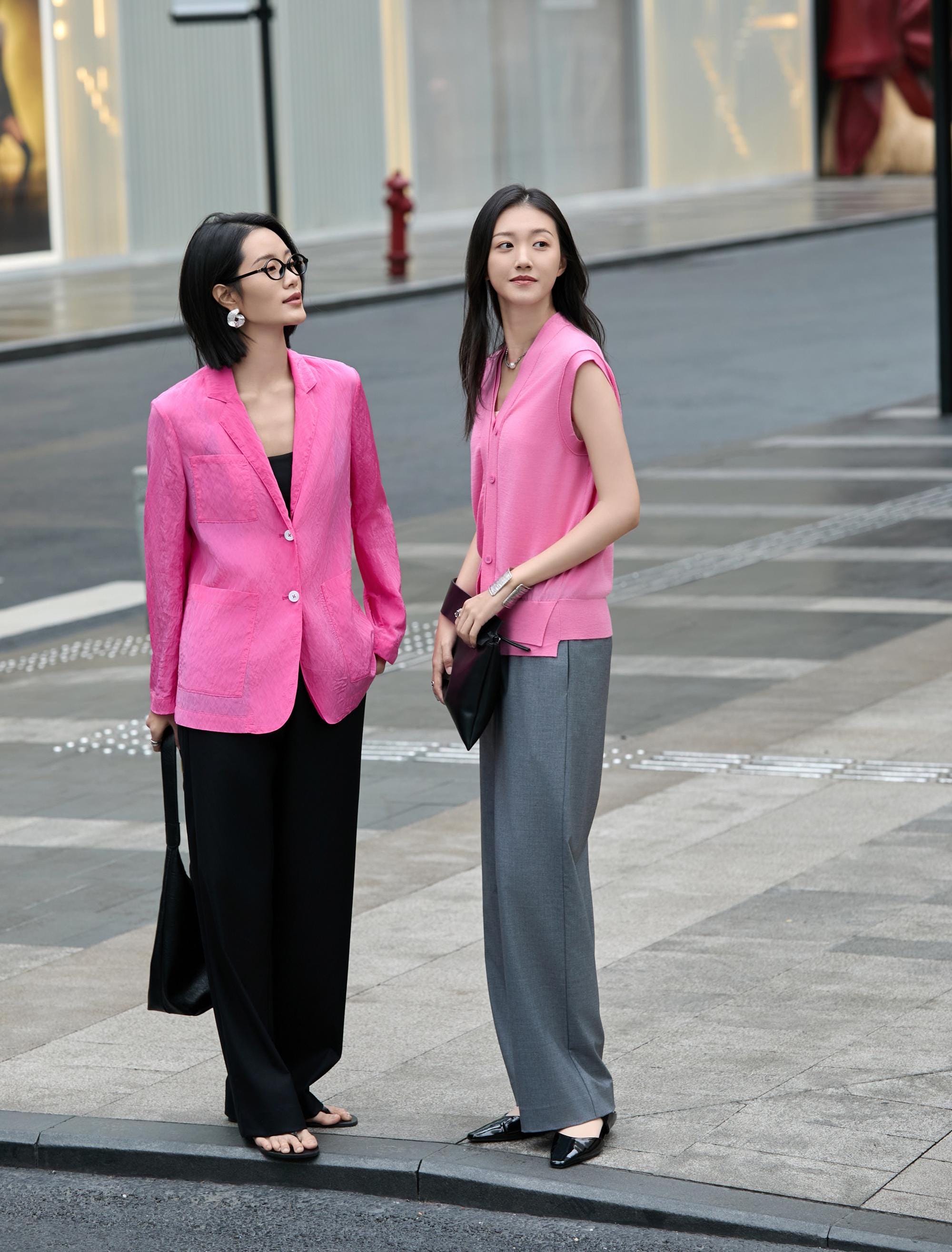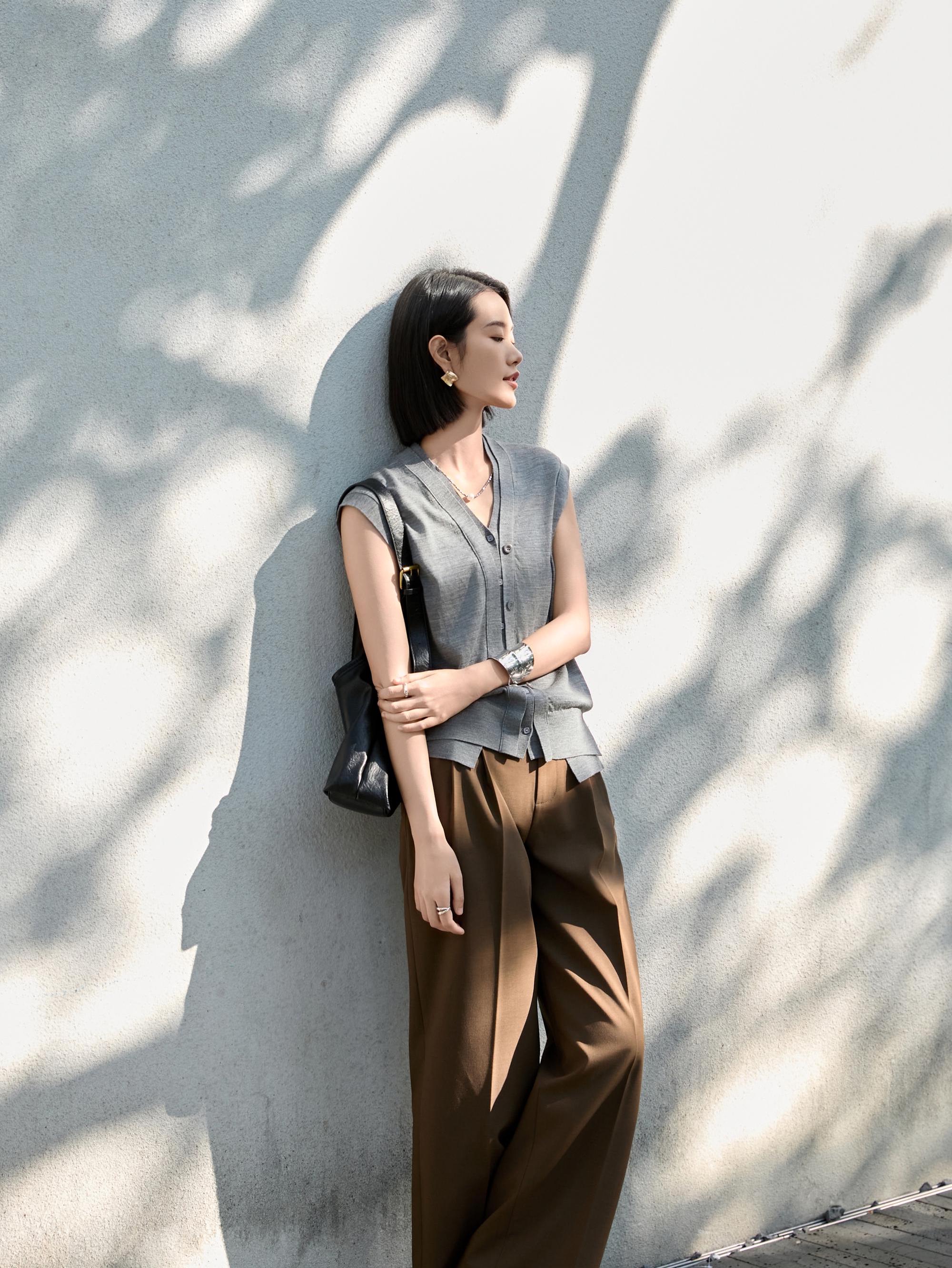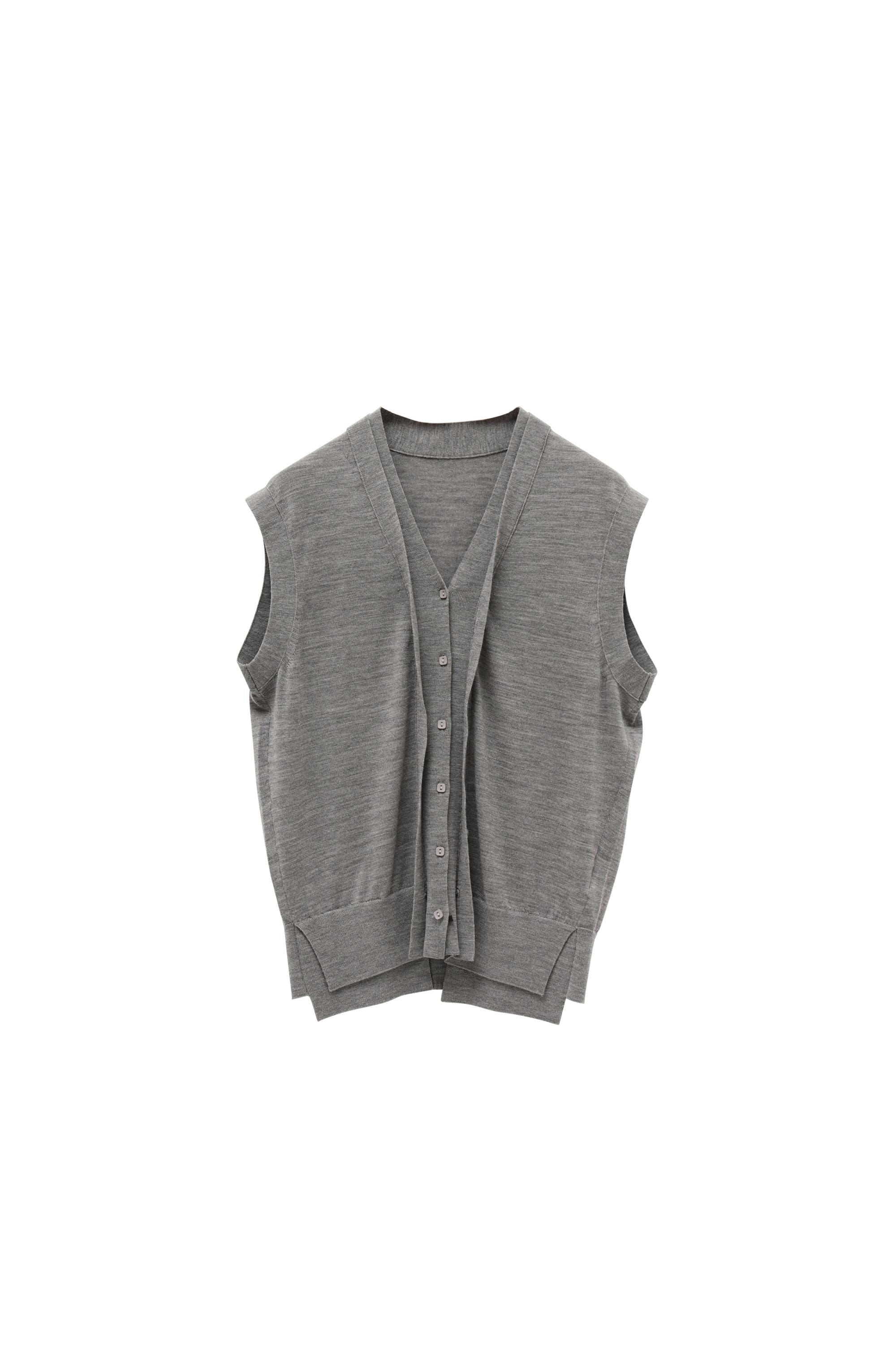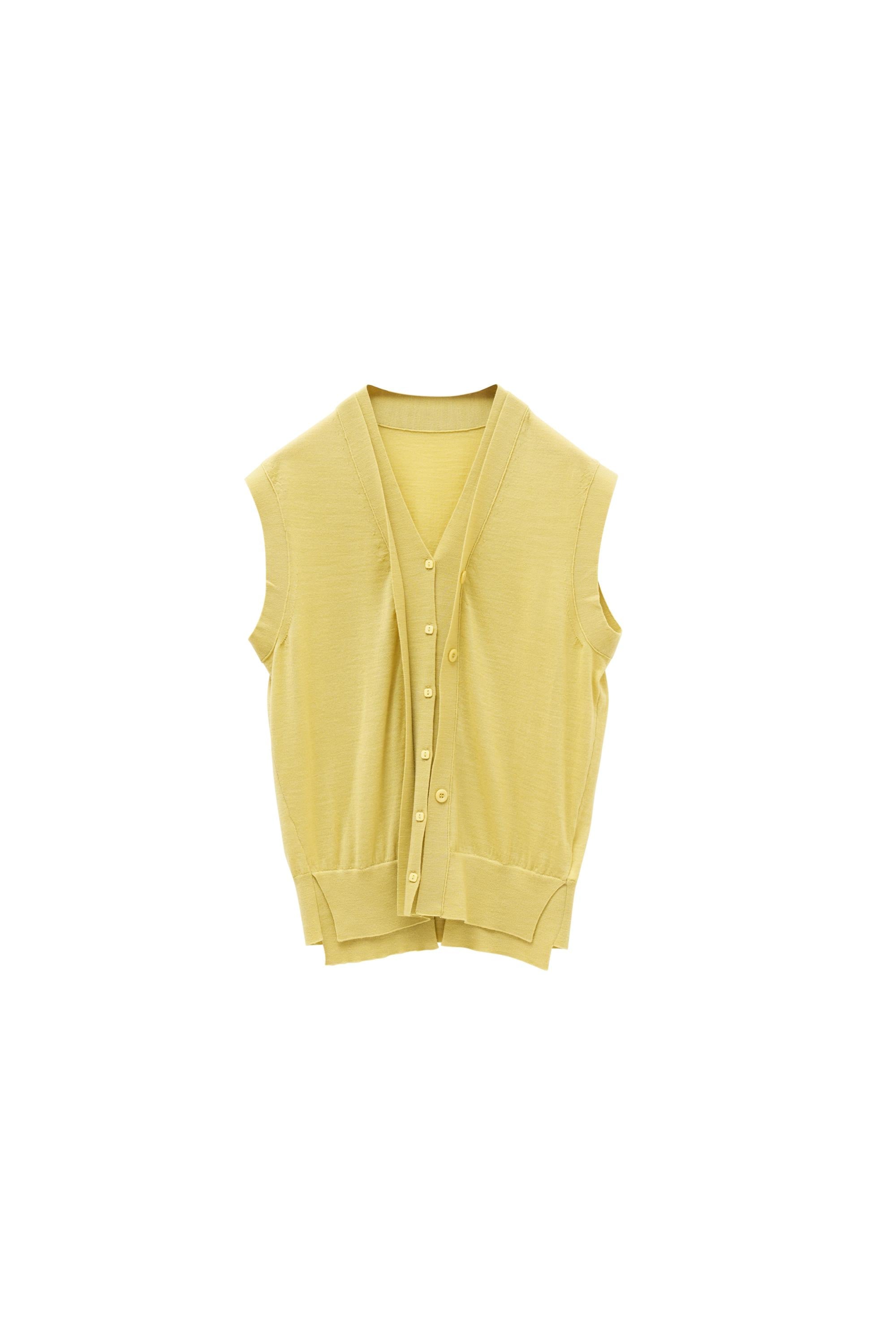 Colorful Layered Wool Vest for Women | V-Neck Mock Two-Piece Design | Gray, Pink, Yellow