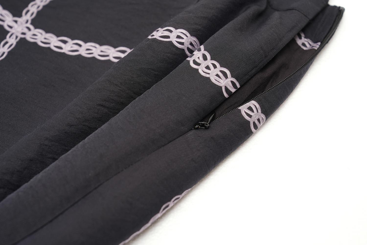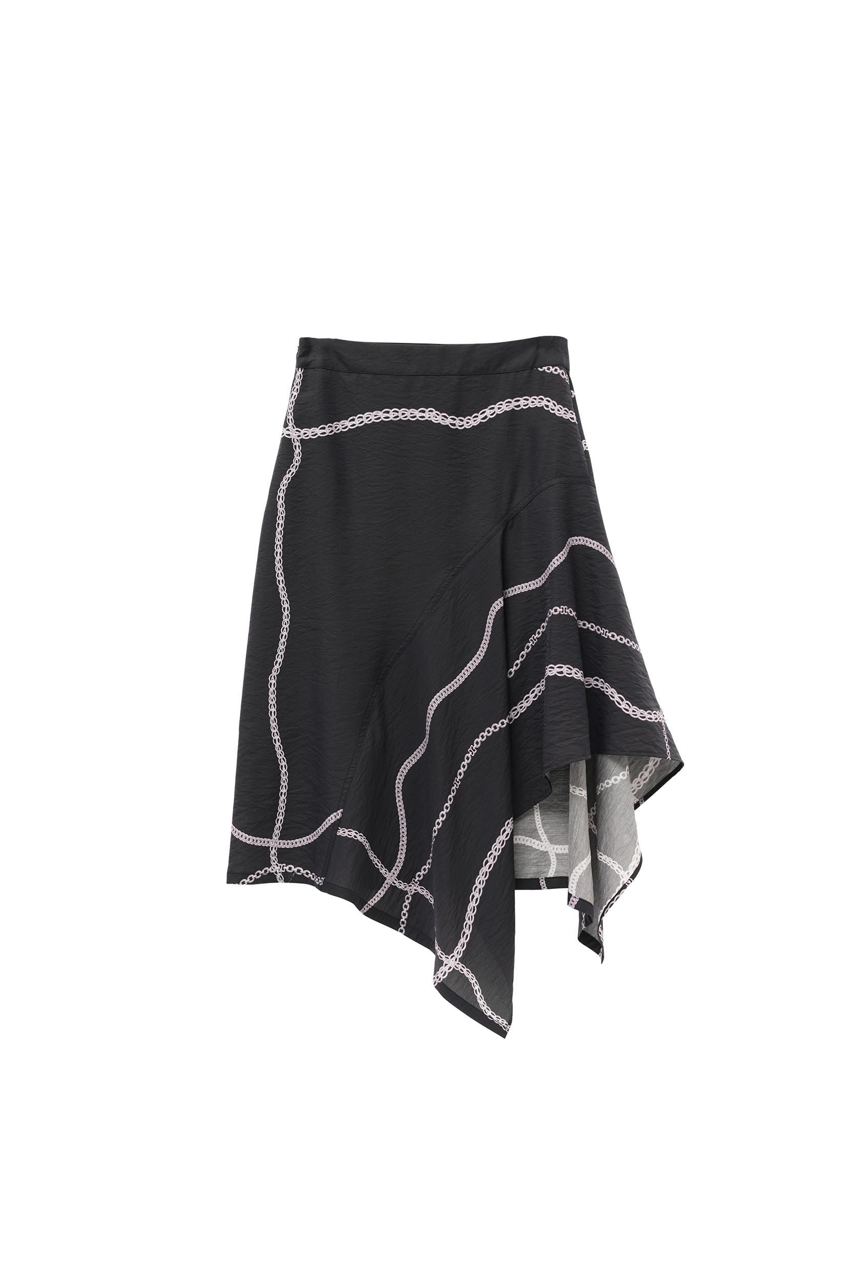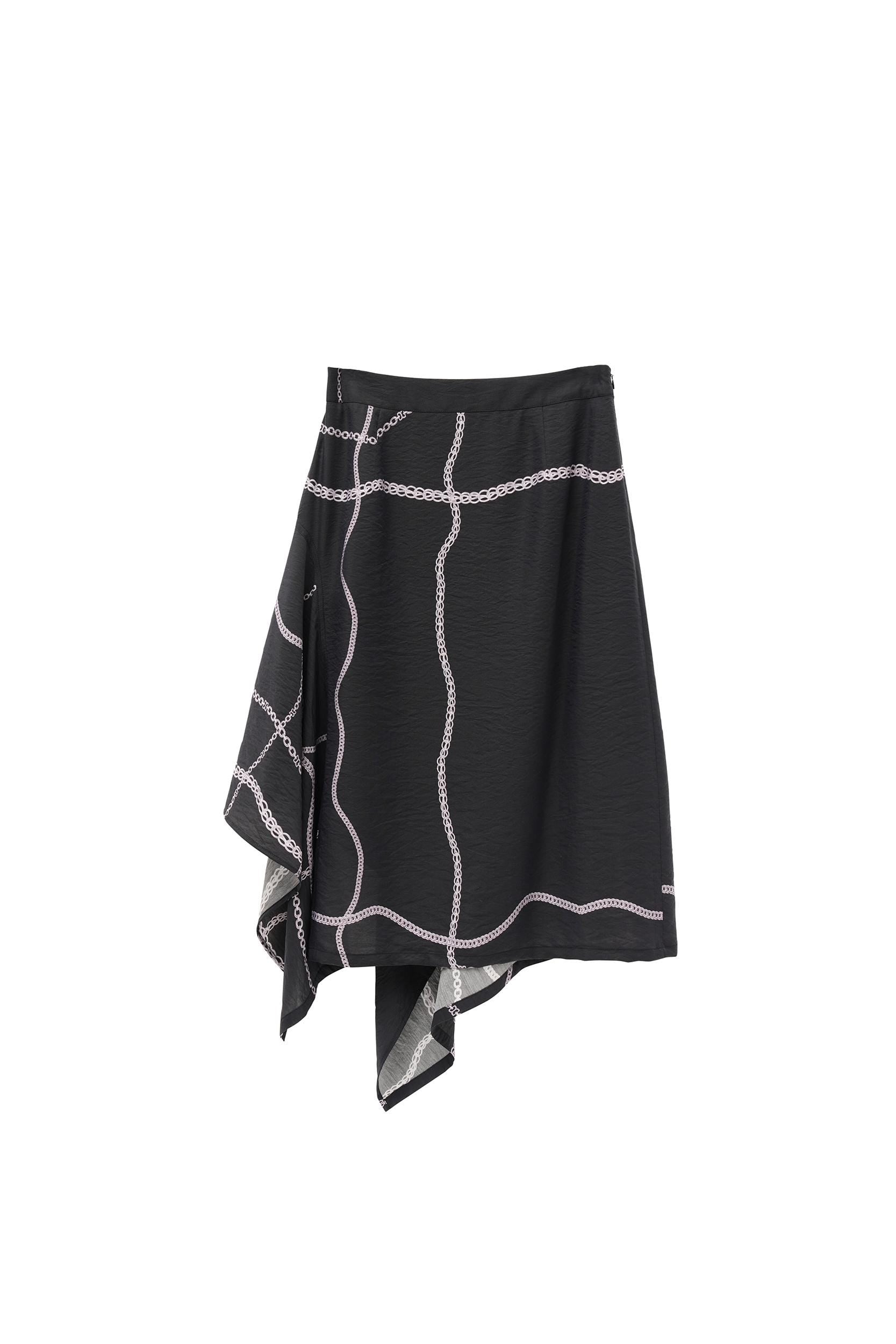 Black Asymmetrical Midi Skirt | Irregular White Stripe Detailing | TENCEL-Silk Blend with Cotton Lining