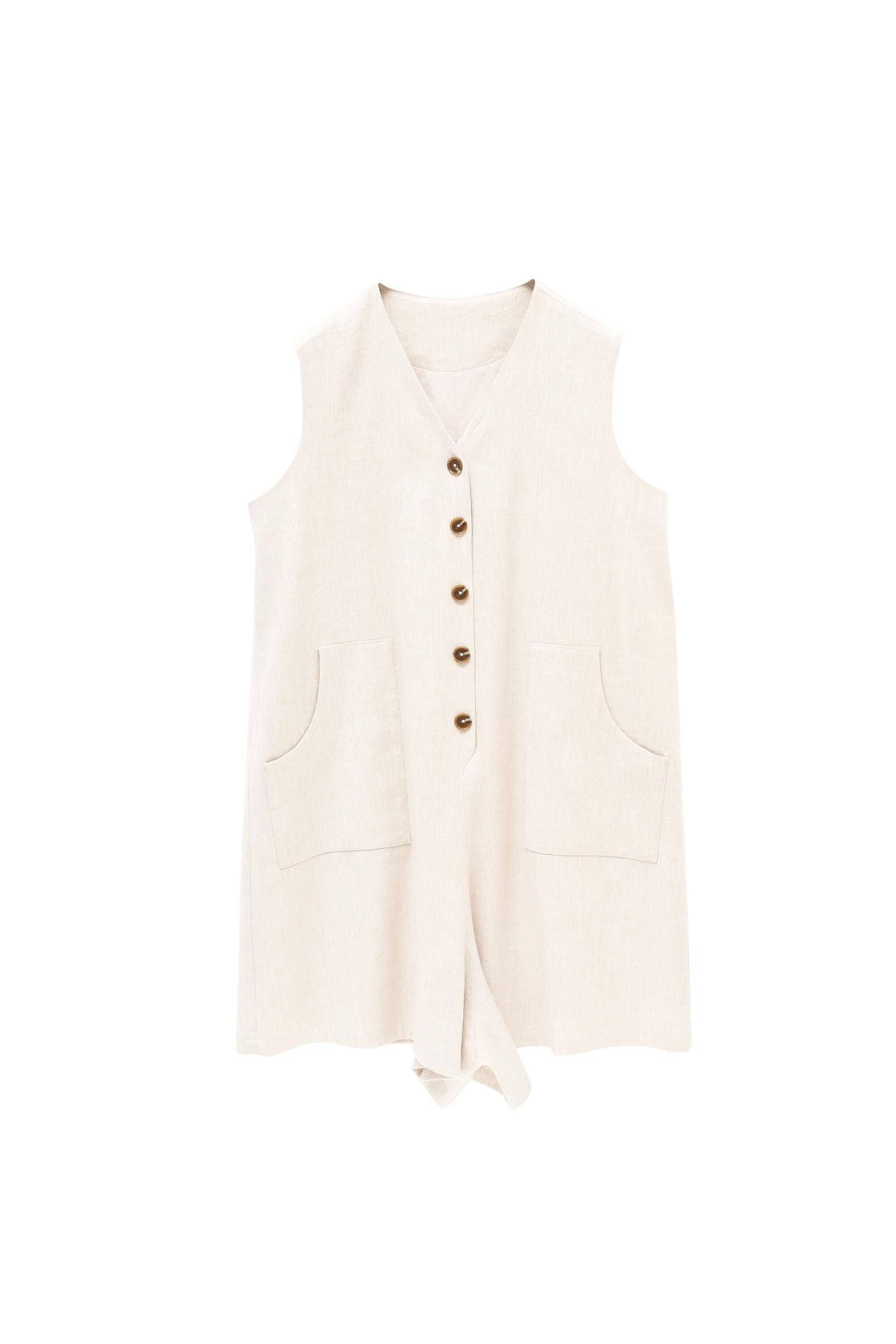 Desert Muse: The “Limestone White hue mirrors sun-bleached canyon walls a neutral base that harmonizes with earthy tones. Blending 55% linens breathability, 42% rayons silkiness, and 3% spandexs stretch, this jumpsuit molds to your form like a second skin.