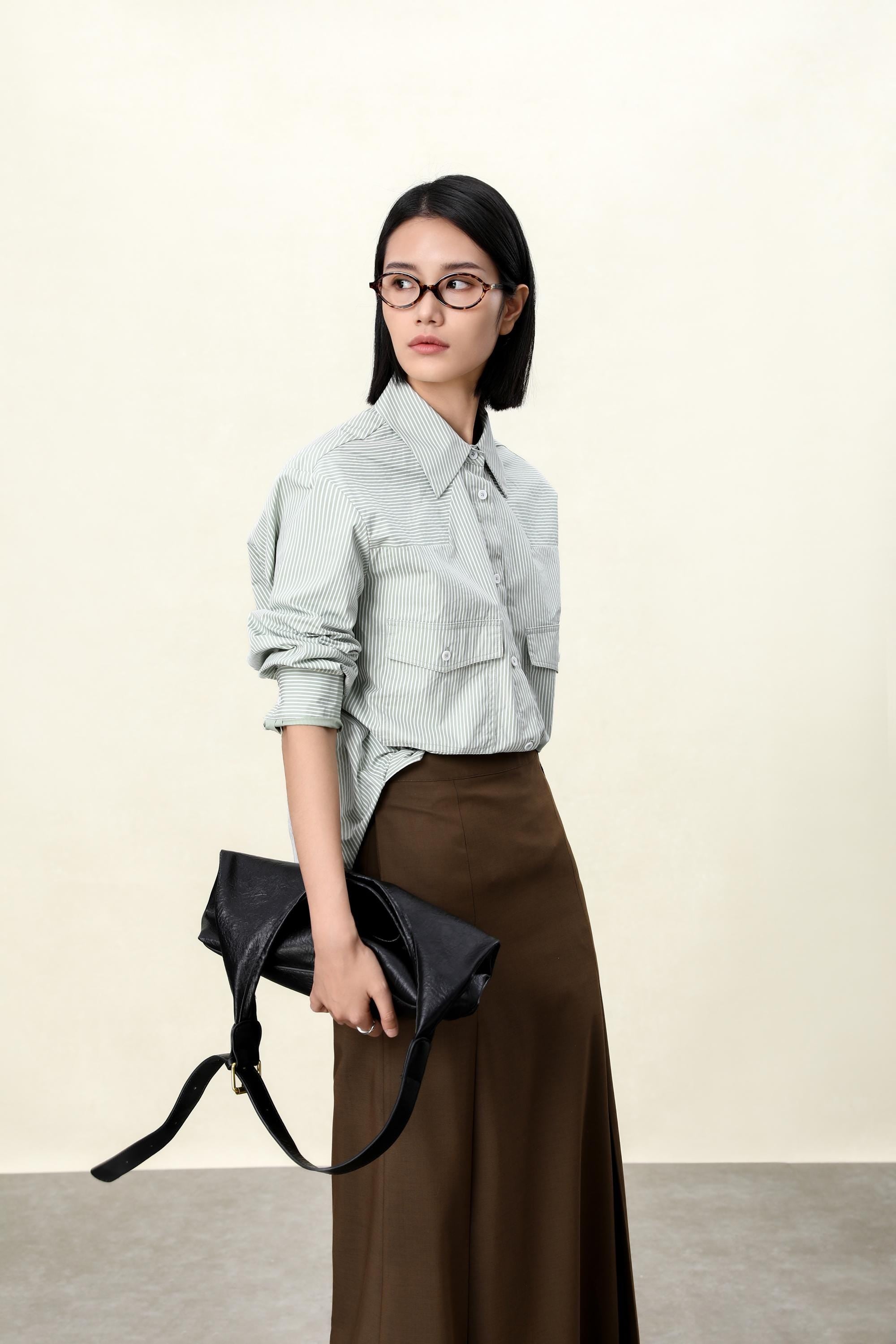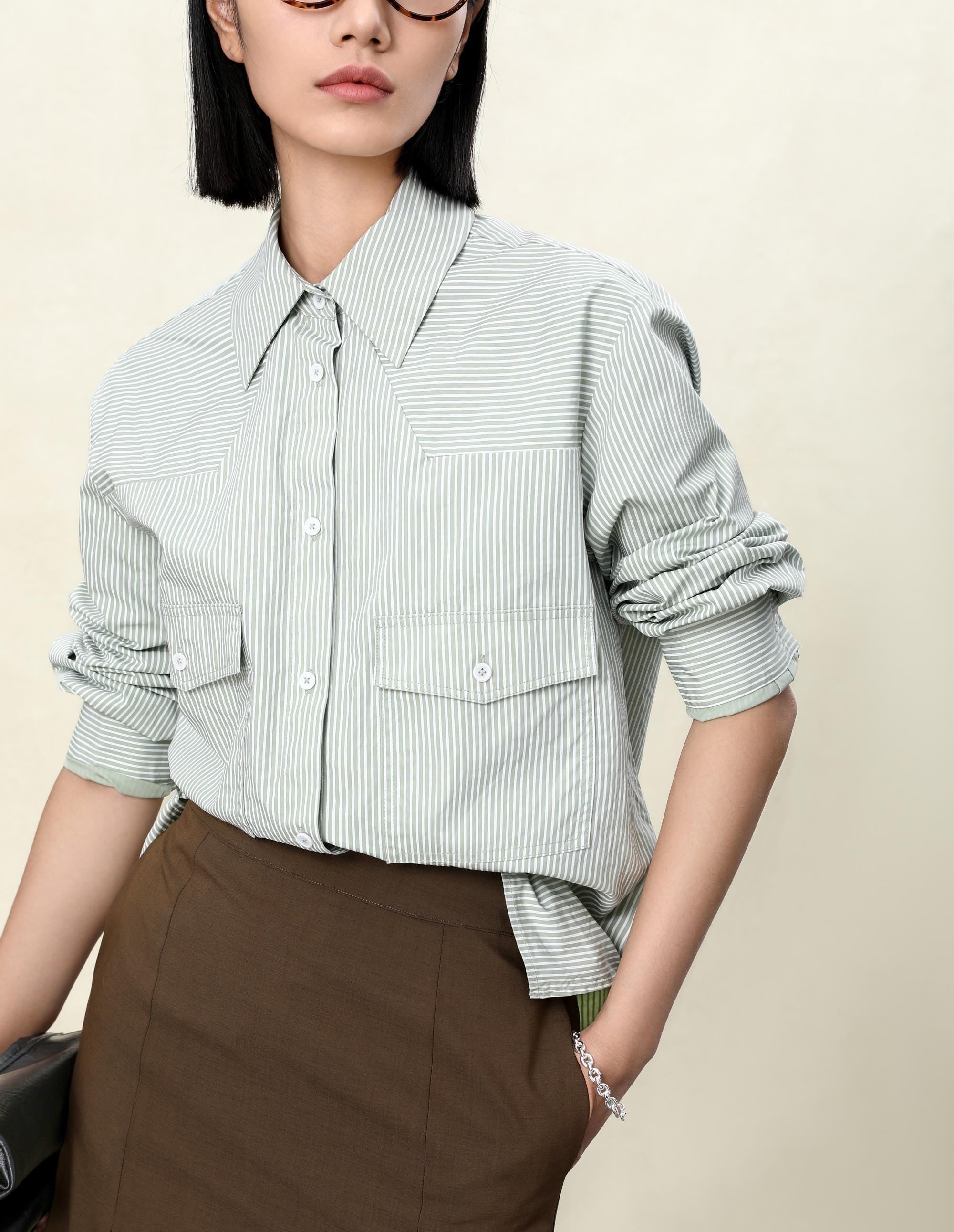 Workwear Reinvented: Two oversized chest pockets add utilitarian chic (fits A6 notebook)
