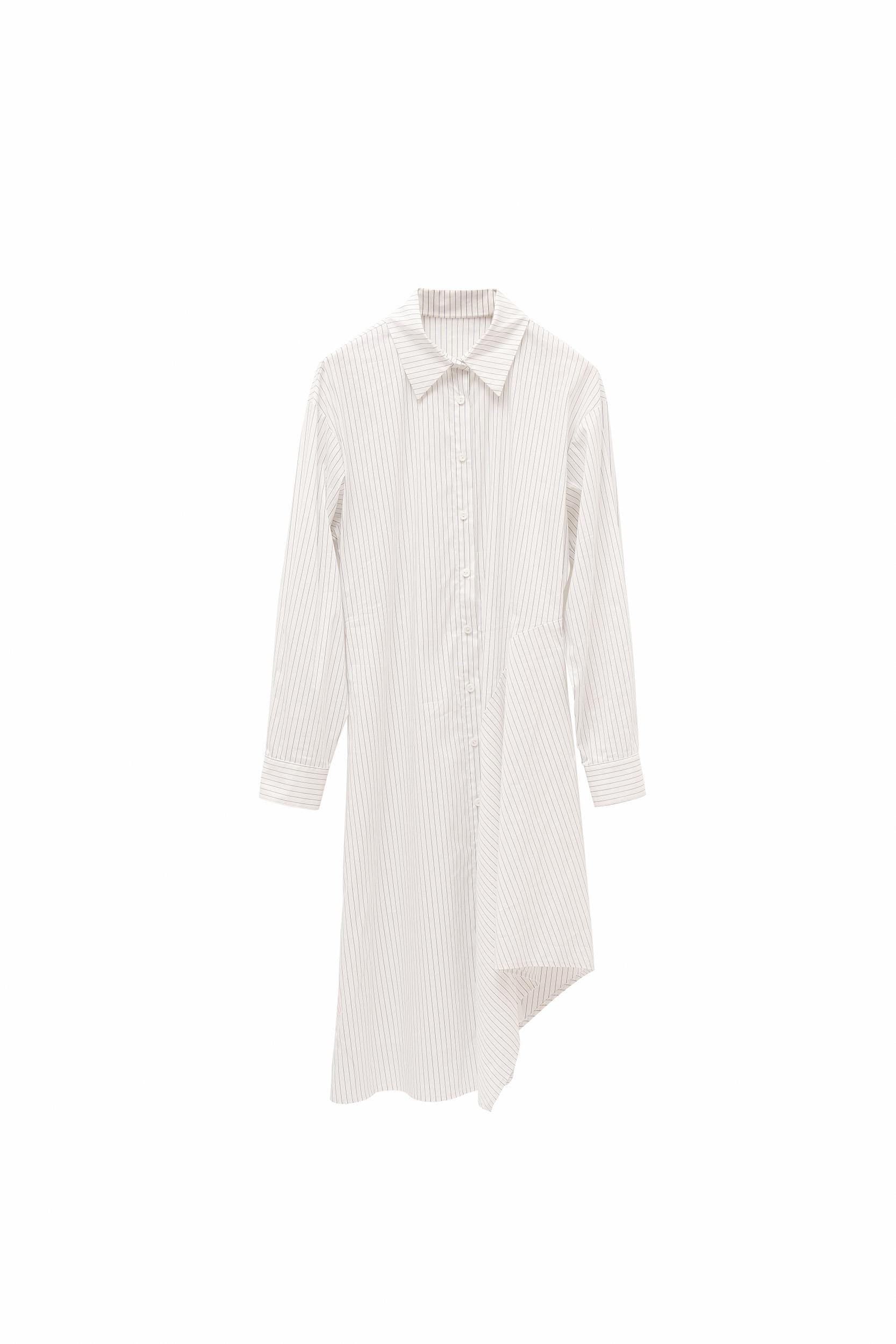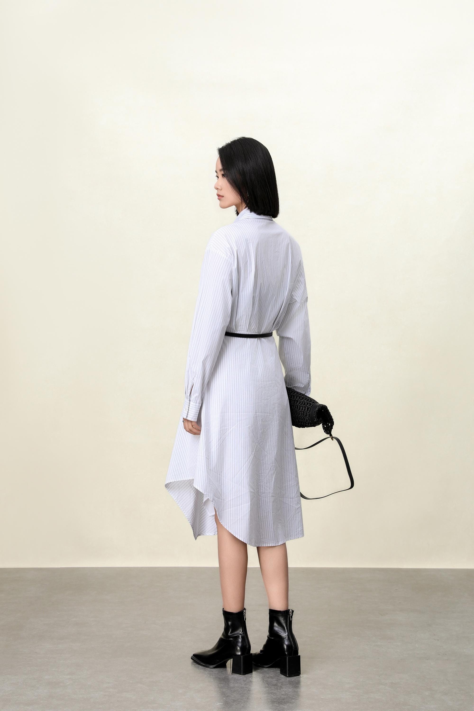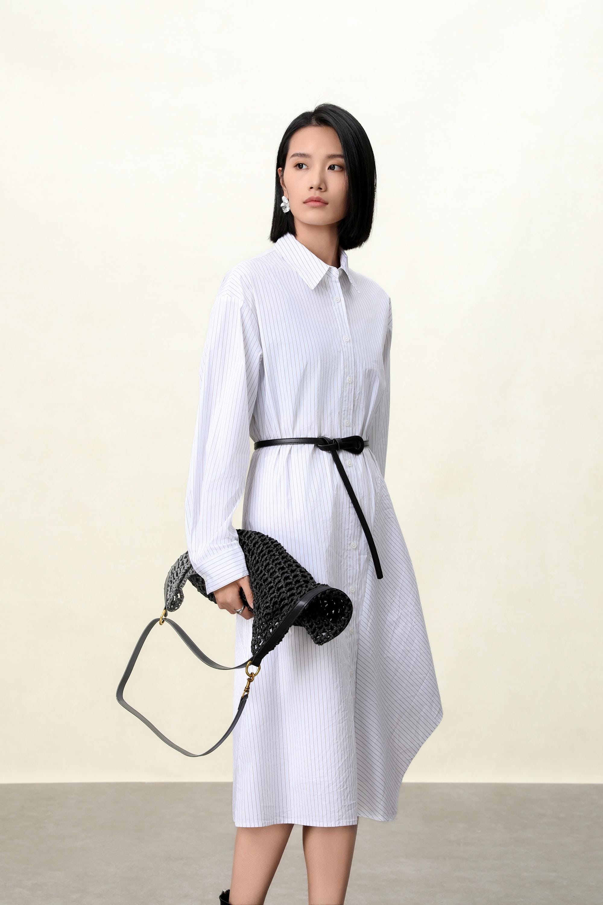 White Vertical Stripe Shirt Dress | Slimming Cotton-Blend | Longline Office-to-Resort Wear