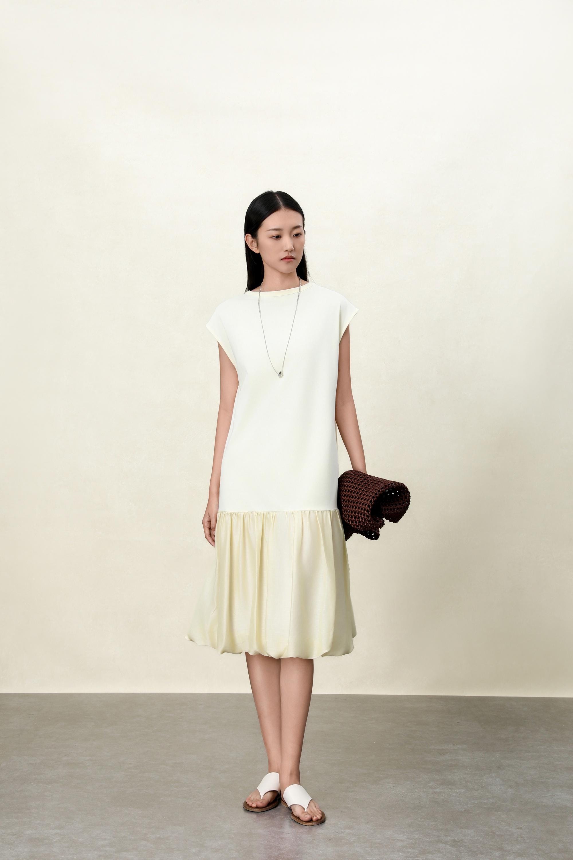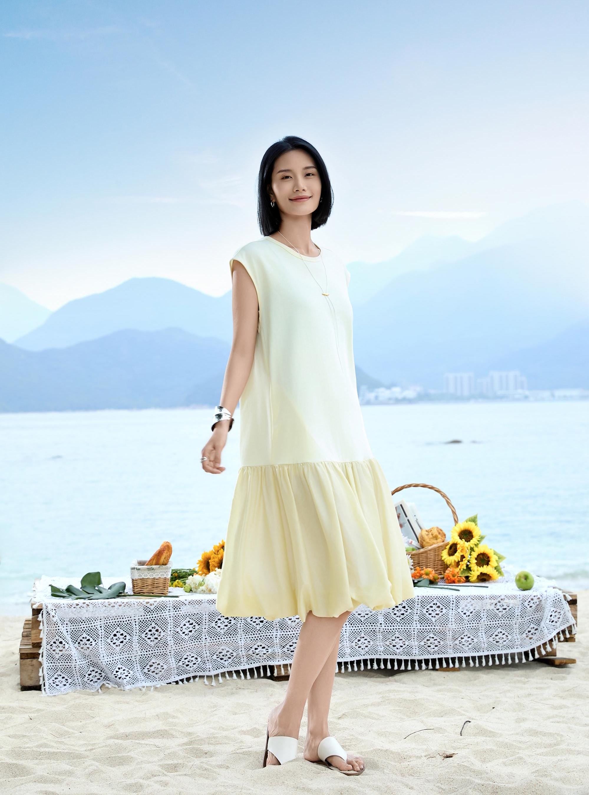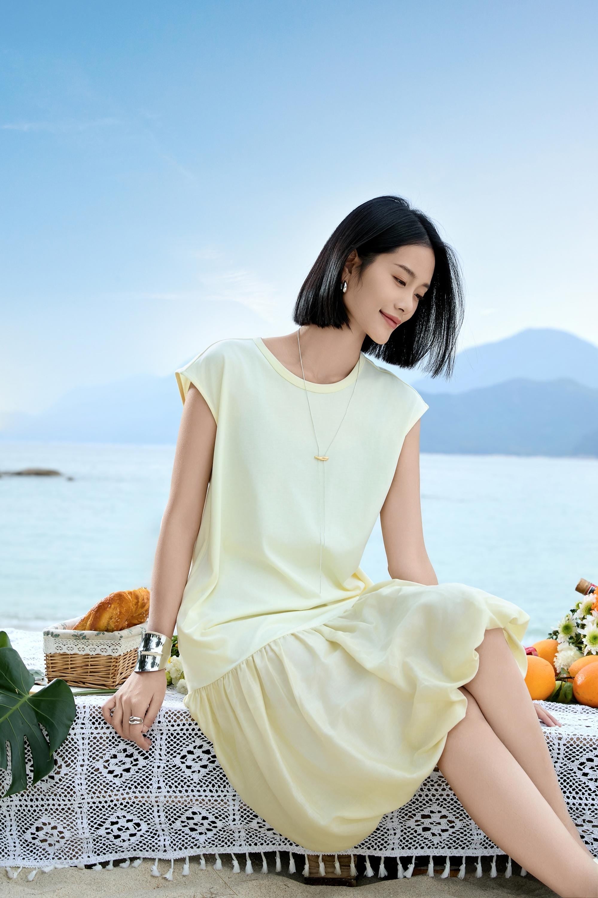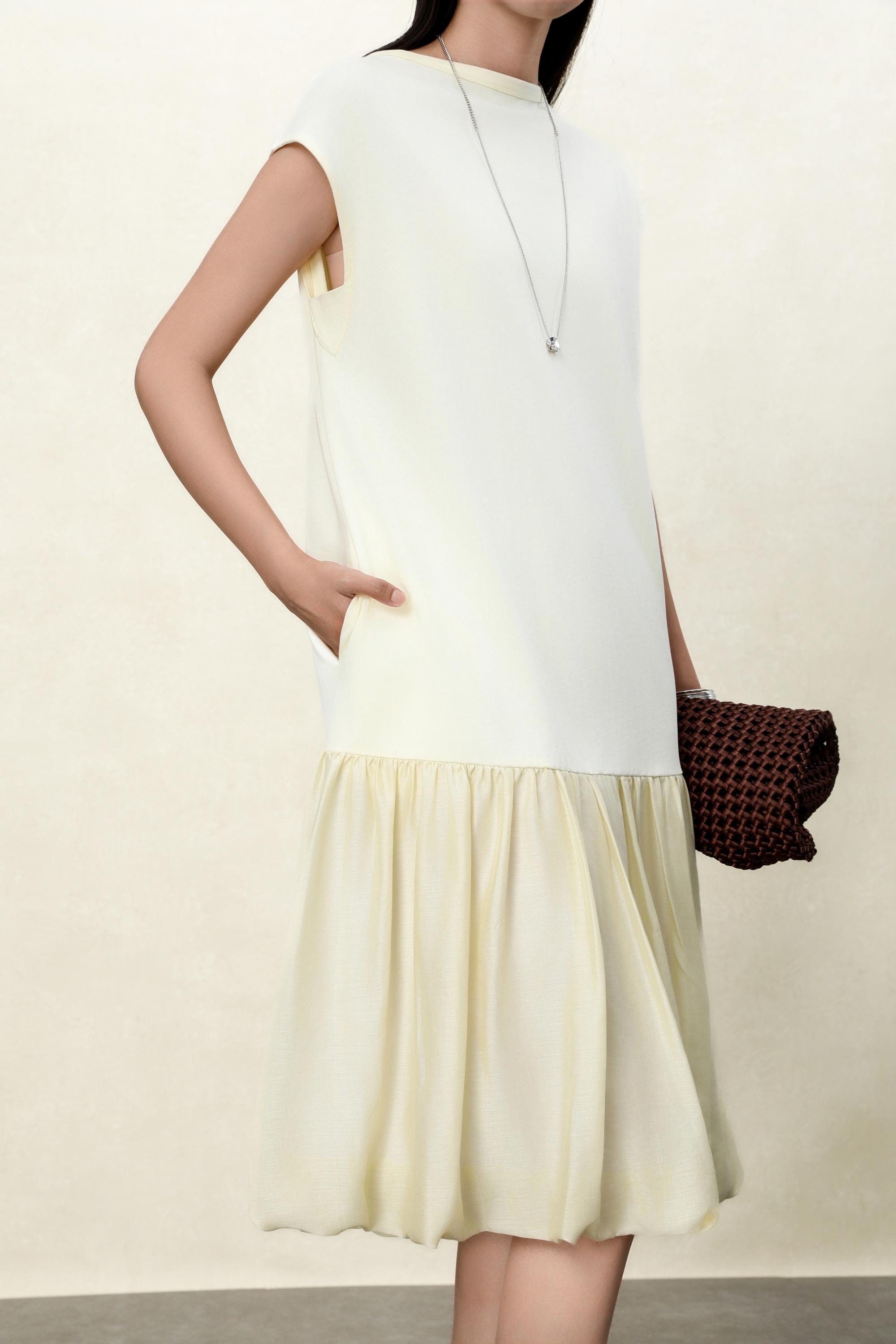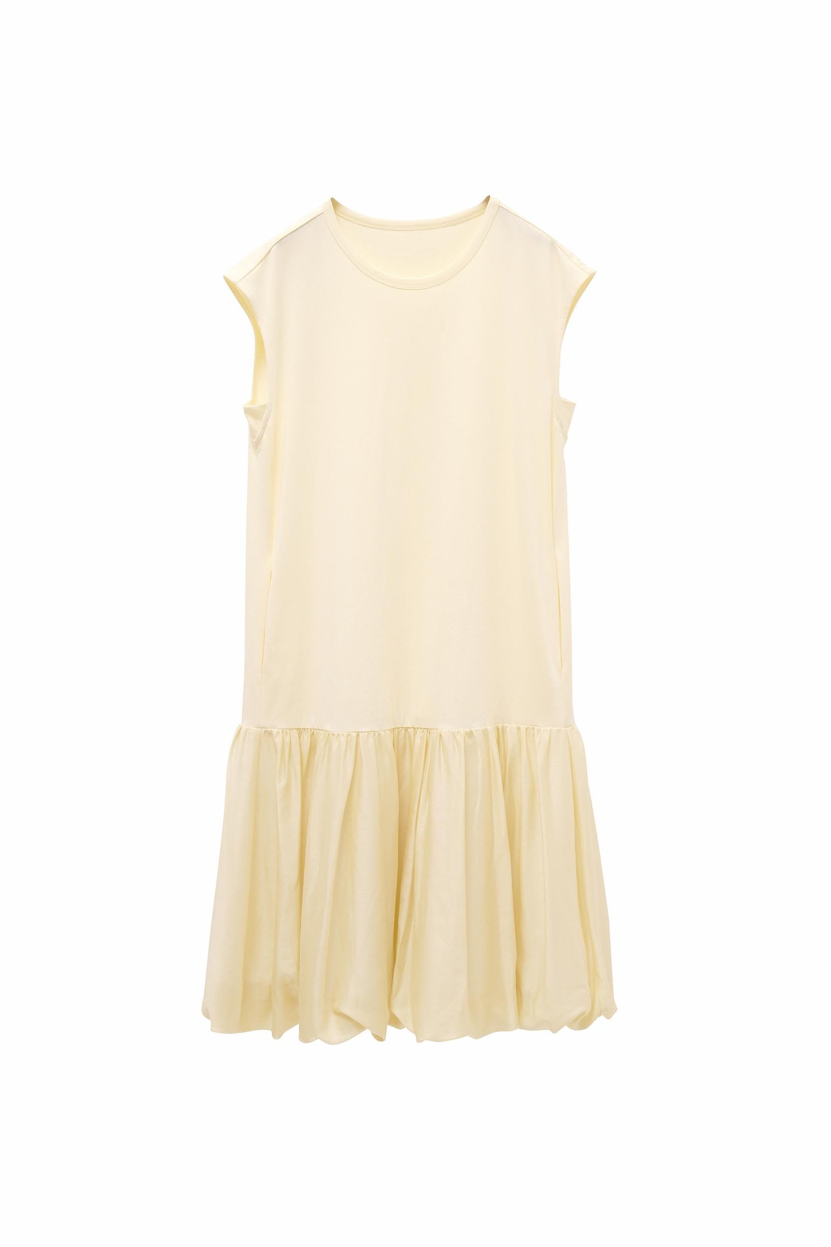 Yellow Sleeveless Layered Dress, yellow layered dress, mugwort-cotton antimicrobial | TENCEL-Linen Blend